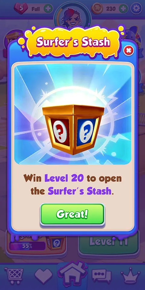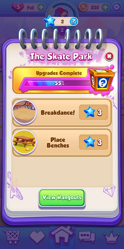 探索并建造装饰滑板天堂,让休息室变新,扩展运营基地。通过消除格子、破解谜题解锁独特物品装饰场所。
