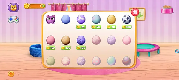 多样房间模板:游戏提供多种房间模板,进入游戏可为宠物挑选心仪的房间,给宠物舒适的居住环境。