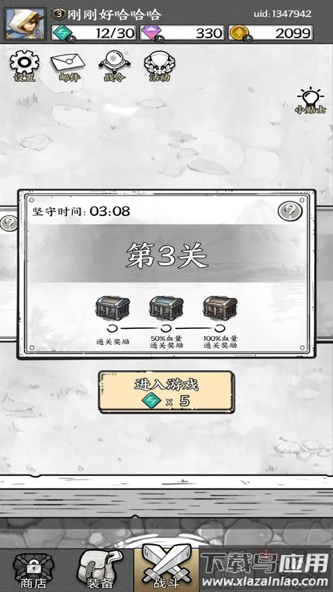 2、进入游戏主界面后,点击战斗按钮,随后选取你想要挑战的具体关卡。