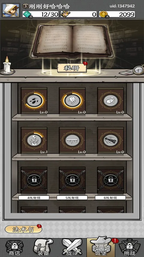 5、战斗赢取的金币可用于强化武器等级,也能在城堡内研发全新的法术技能。