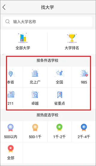 4、当然也可以按自身条件和热度来选择大学。