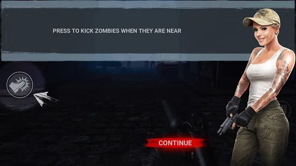 切勿让僵尸近身,如果实在没有办法,可通过左侧的脚蹬按钮,踢退僵尸。