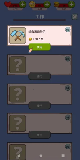 2.先来为主角寻找工作吧!随着等级的提升,可以选择的工作也会更多。