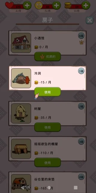 4.你还需要为主角寻找房屋,不同的房屋其每月的租金也会不同!