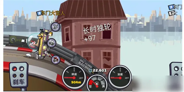 第三种:选择使用登月车,然后在地图中利用车辆的特性将车头翘起来,以此来一直触发获得单轮特技金币。