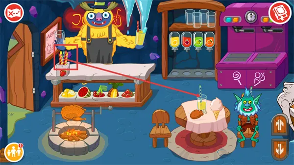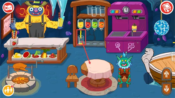 3、从机器中取出【冰淇淋】,搭配已配送的饮品,完善餐桌的餐食供应内容。