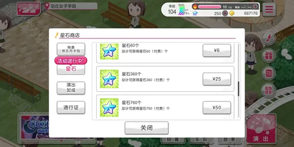 2、通行证(30元)购买后立即获得付费星石360,并获得演出报酬经验加成,每月最多获得米歇尔贴纸90,。在累计到一定购买次数后获得奖励(3次米歇尔贴纸300,6次免费星石2000,9次免费星石2500,12次免费星石5000,达到12次后重新累计)