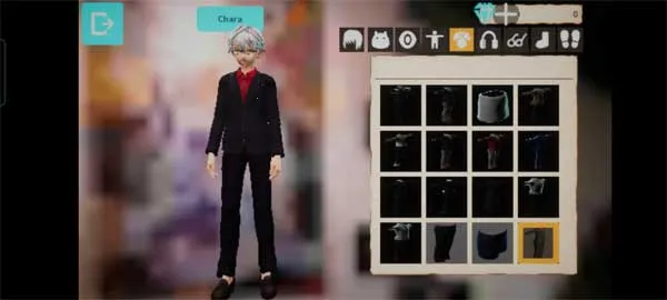 1、打开游戏之后就要开始设定角色形象,点击“Chara”用来切换角色性别,服装、头发、脸部全部弄好 之后点击左上角的退出按钮。